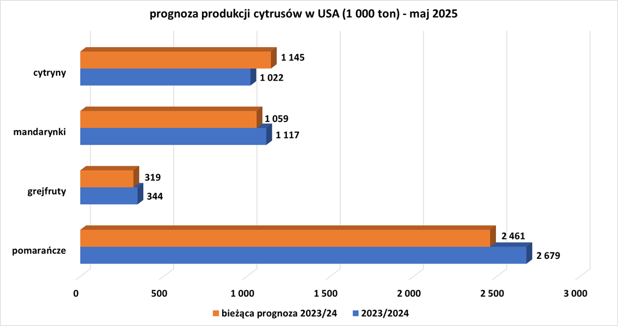- Prognozy USDA dla produkcji cytrusów w USA: