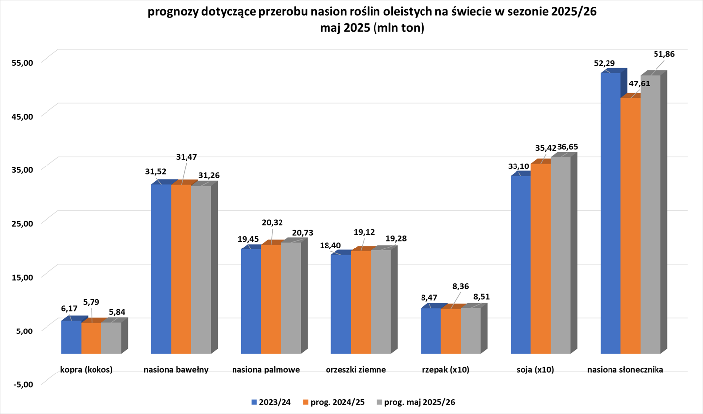 - Globalne kruszenie nasion oleistych wg majowej prognozy USDA: