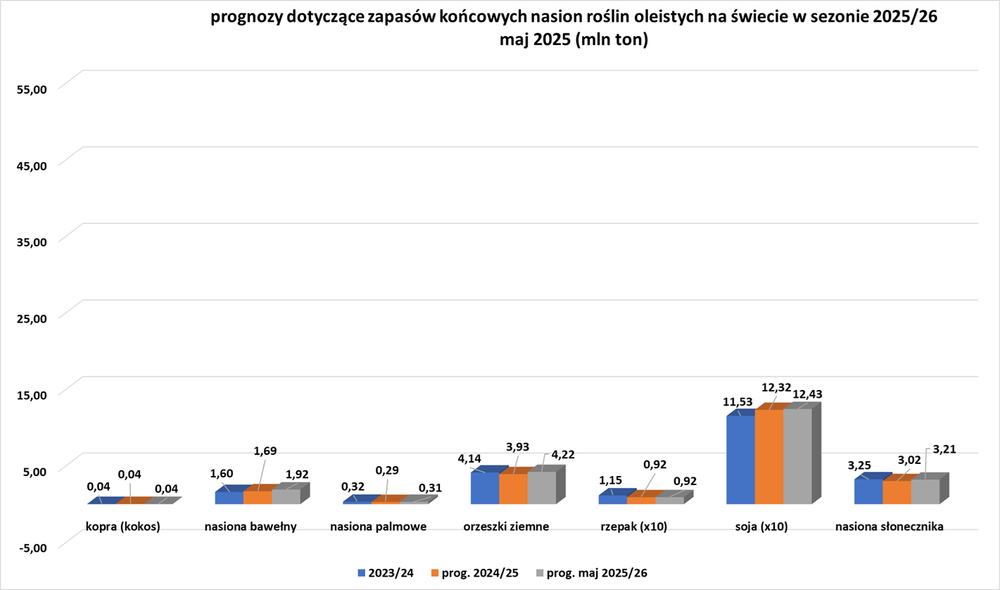 - Globalne zapasy końcowe nasion oleistych wg majowej prognozy USDA: