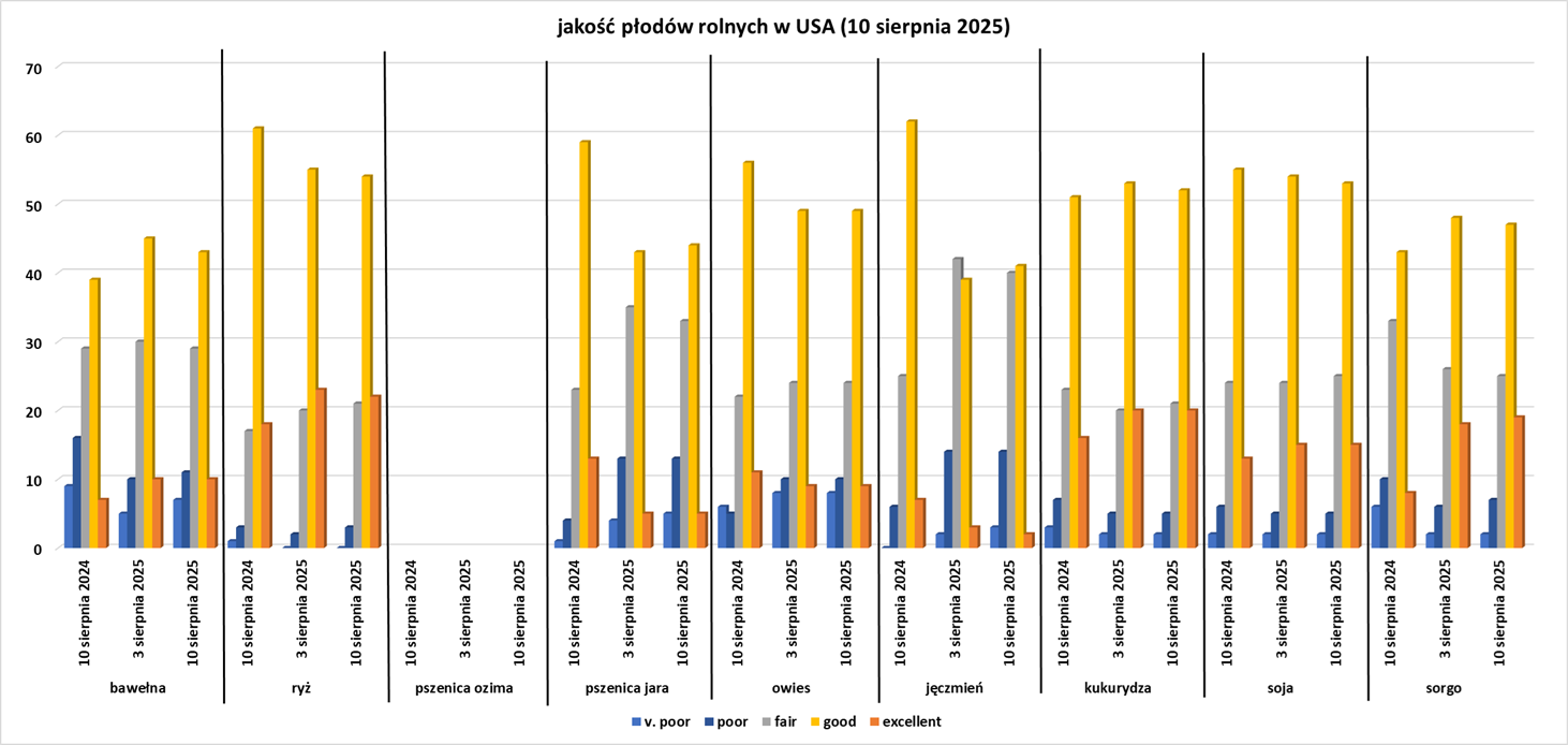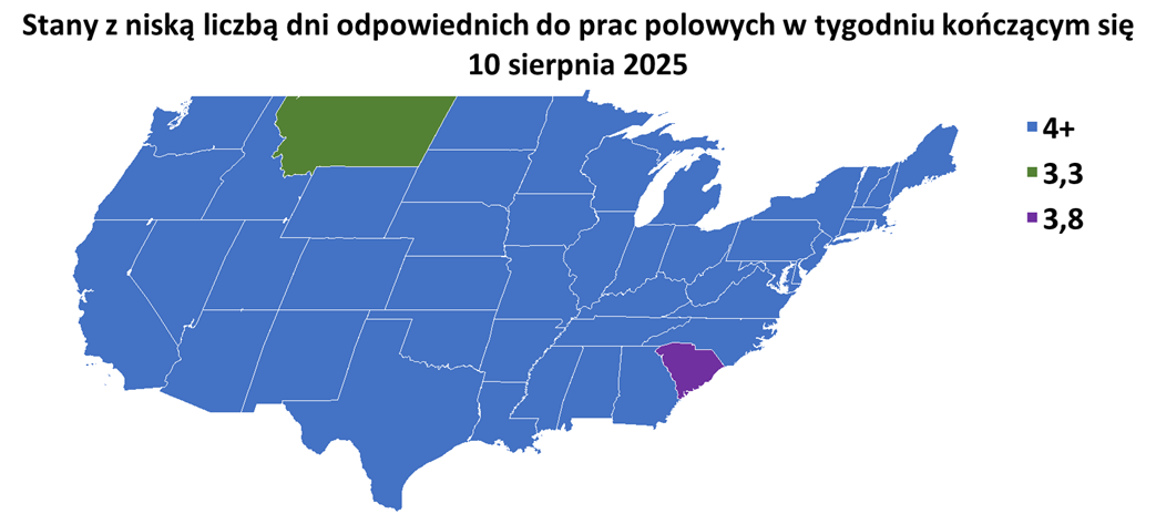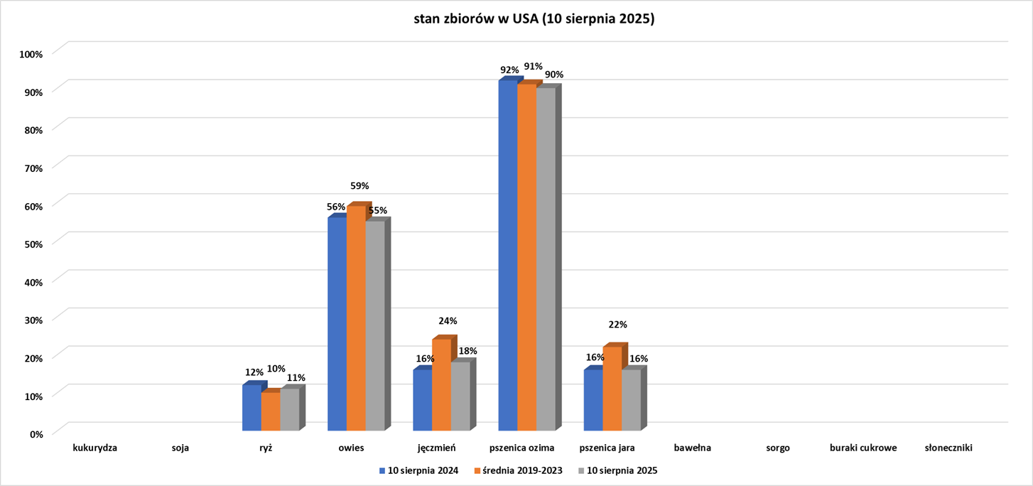 - Dane z raportu USDA Crop Progress z 11 sierpień 2025: