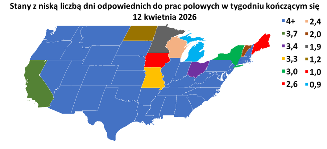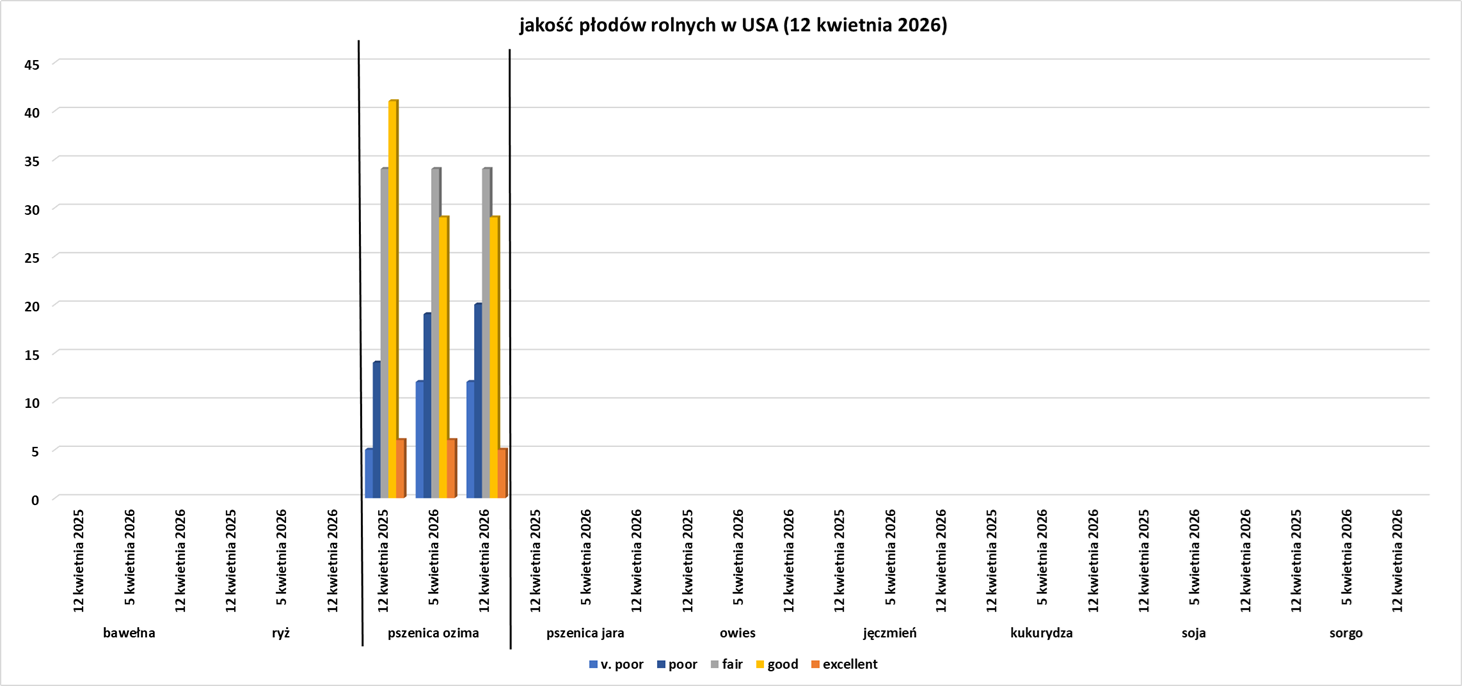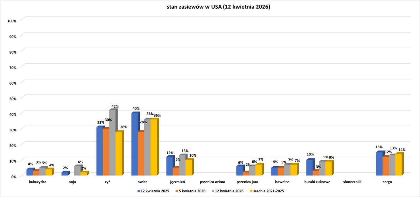- Dane z raportu USDA Crop Progress z 13 kwietnia 2026: