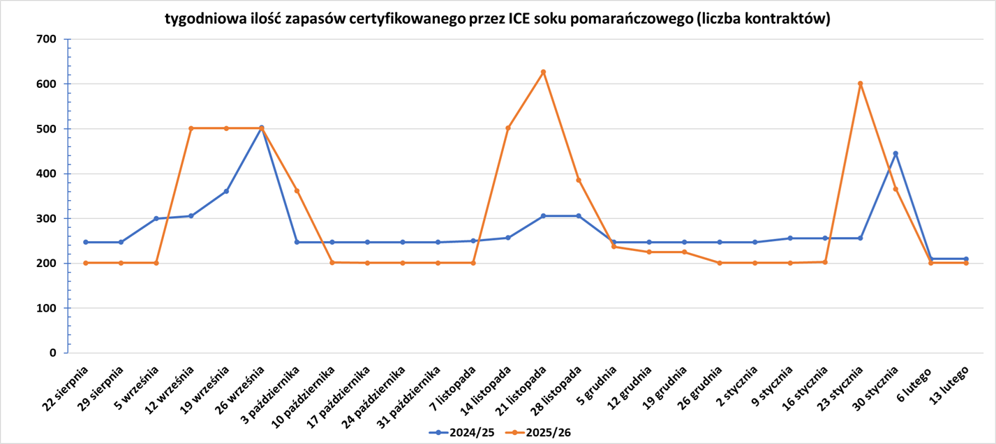 - Zapasy soku pomarańczowego w magazynach ICE: