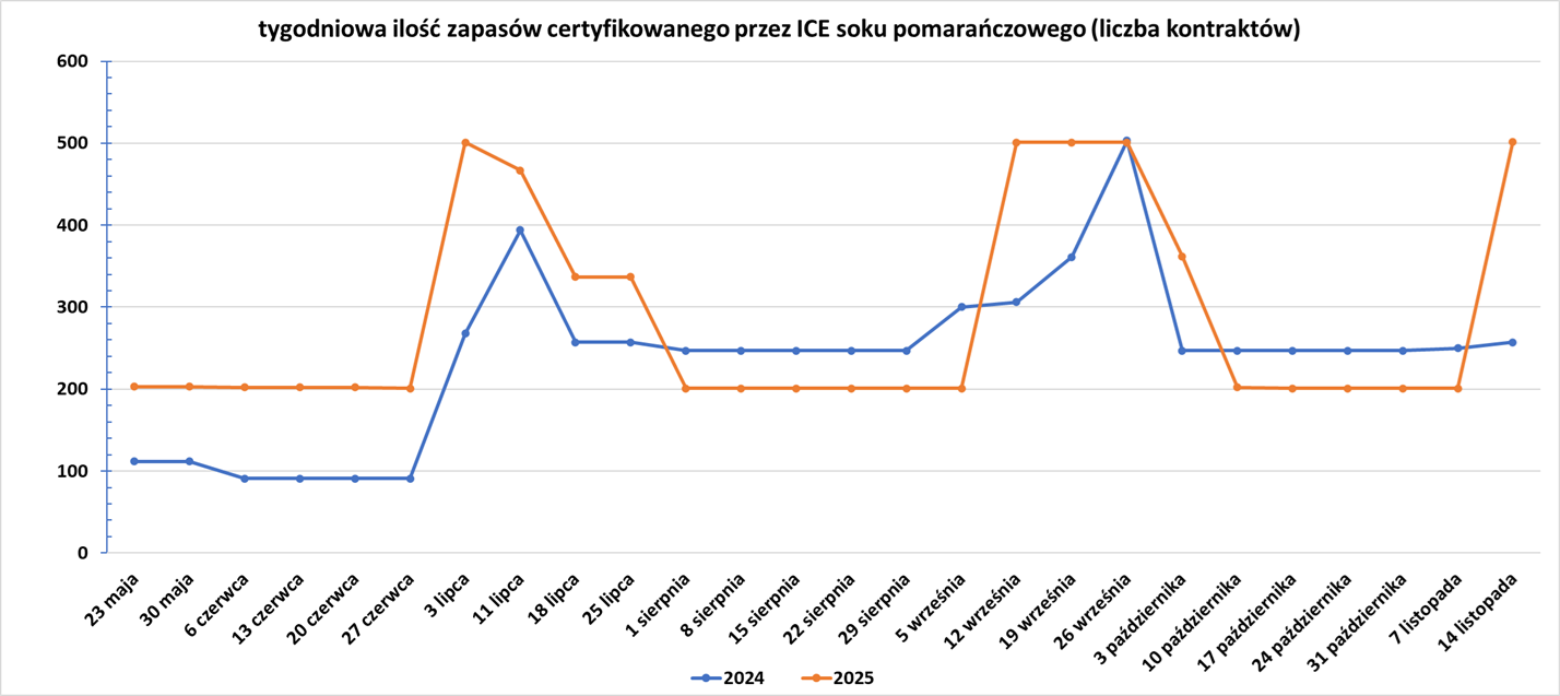 - Zapasy soku pomarańczowego w magazynach ICE:
