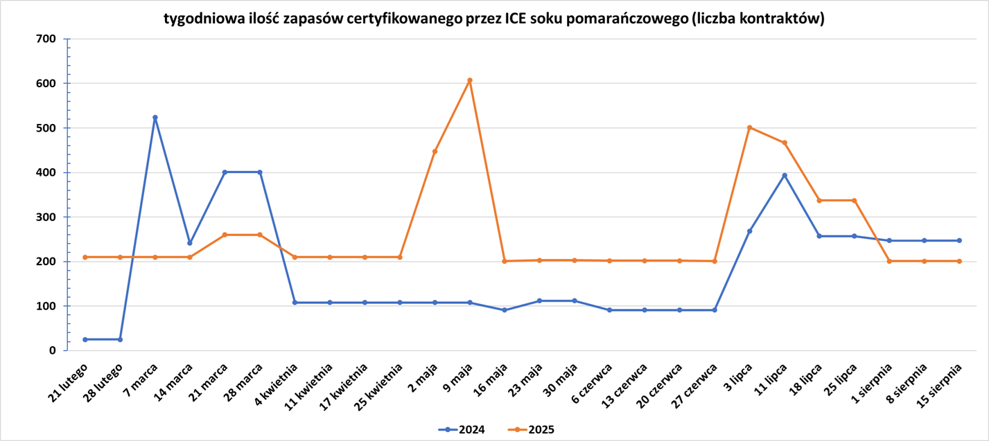 - Zapasy soku pomarańczowego w magazynach ICE: