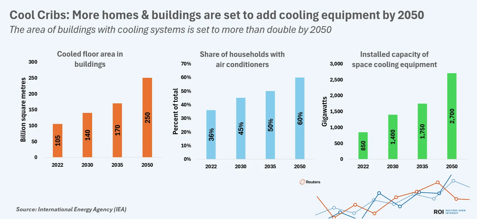 - Co ważne, lokalizacja wzrostu zapotrzebowania również znacznie różni się między tymi dwoma czynnikami napędowymi, podobnie jak konsekwencje niespełnienia tego szczytu. Większość ekspansji centrów danych ma nastąpić w rozwiniętych gospodarkach z nowoczesnymi sieciami energetycznymi, a zwiększony popyt będzie wynikał głównie z przetwarzania żądań wyszukiwania dla firm i aplikacji mediów społecznościowych. Z kolei zdecydowana większość wzrostu zapotrzebowania na klimatyzację ma nastąpić w gospodarkach wschodzących, w których wiele społeczności już stoi w obliczu perspektywy zgonów i chorób związanych z upałem w ramach już kruchych systemów energetycznych. Wzrost liczby zgonów i cierpienia ludzi, prawdopodobny skutek niedoborów systemów energetycznych w krajach rozwijających się, jest innego rzędu wielkości niż ryzyko wolniejszych wyników wyszukiwania i obciążenia gospodarczego, które może wynikać z braku zwiększenia zasilania centrów danych. „Pojedyncza fala upałów — nawet trwająca zaledwie kilka dni — powoduje dziesiątki tysięcy zgonów w Indiach” — wynika z raportu opublikowanego w kwietniu przez indyjskie Centrum Nauki i Środowiska. Według IEA w 2022 r. około 36% wszystkich gospodarstw domowych miało posiadać jakiś sprzęt klimatyzacyjny. Obecnie około 5% światowych zapasów klimatyzatorów znajduje się w Indiach, czyli około 110 milionów jednostek z około 2,4 miliarda używanych na całym świecie, zgodnie z danymi IEA. Do 2035 r. udział Indii w światowym rynku klimatyzatorów ma wzrosnąć do 13% (do prawie 500 milionów sztuk), a następnie do ponad 1,1 miliarda sztuk do 2050 r. Indonezja, kolejny szybko rozwijający się kraj o dużej populacji, podatny na gorące i wilgotne okresy, ma potroić liczbę klimatyzatorów do 2035 r., podczas gdy Brazylia, Meksyk i Bliski Wschód mają ją podwoić.