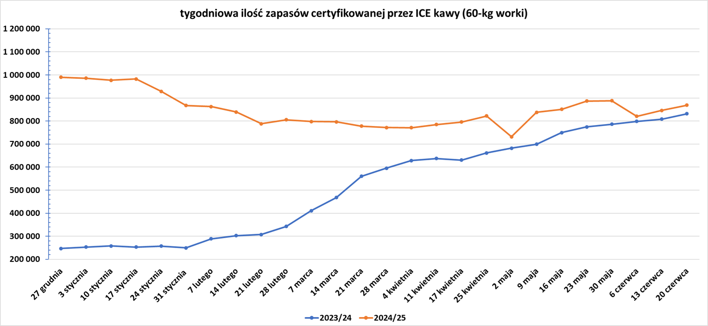 - „Zbiory w Brazylii i Indonezji nadal zwiększają dostawy i wywierają presję na ceny (podczas gdy) pojawiają się doniesienia o słabnącym popycie” — powiedział Rabobank.