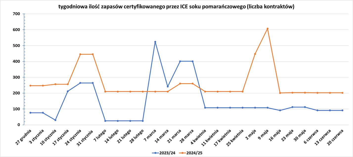 - Zapasy soku pomarańczowego w magazynach ICE: