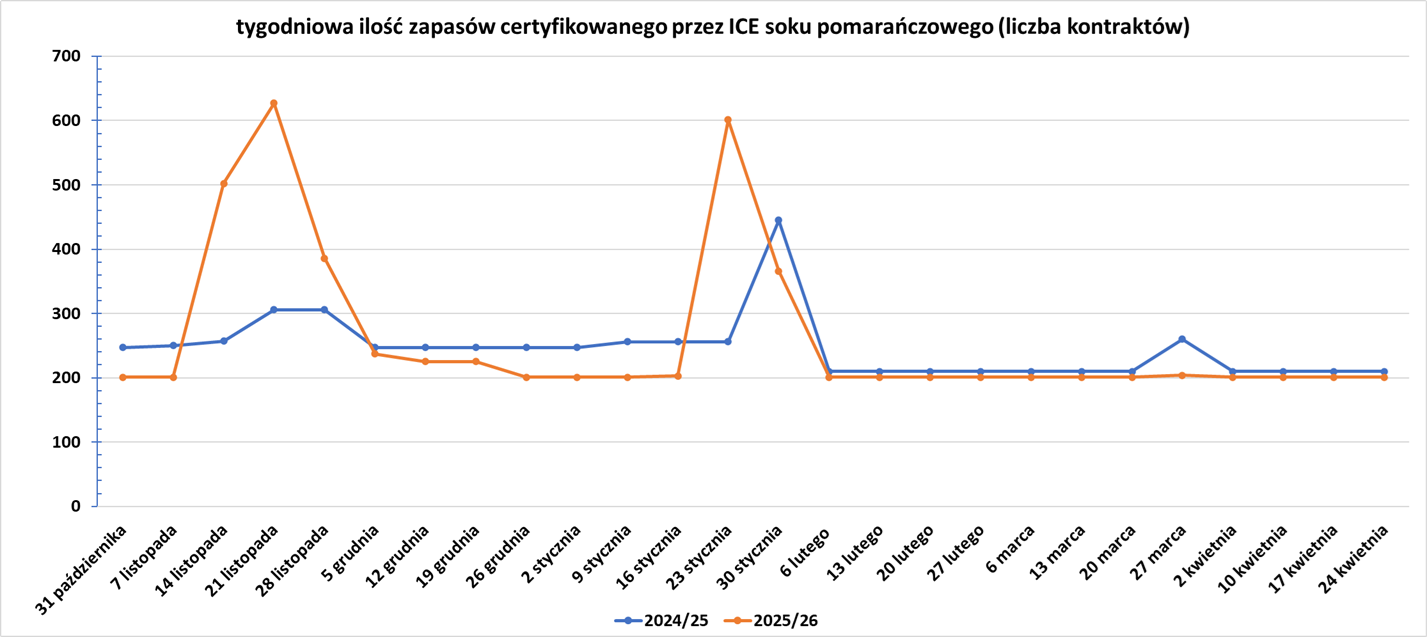 - Zapasy soku pomarańczowego w magazynach ICE: