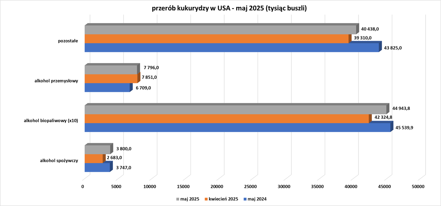 - Przerób kukurydzy w USA w maju 2025 (USDA):