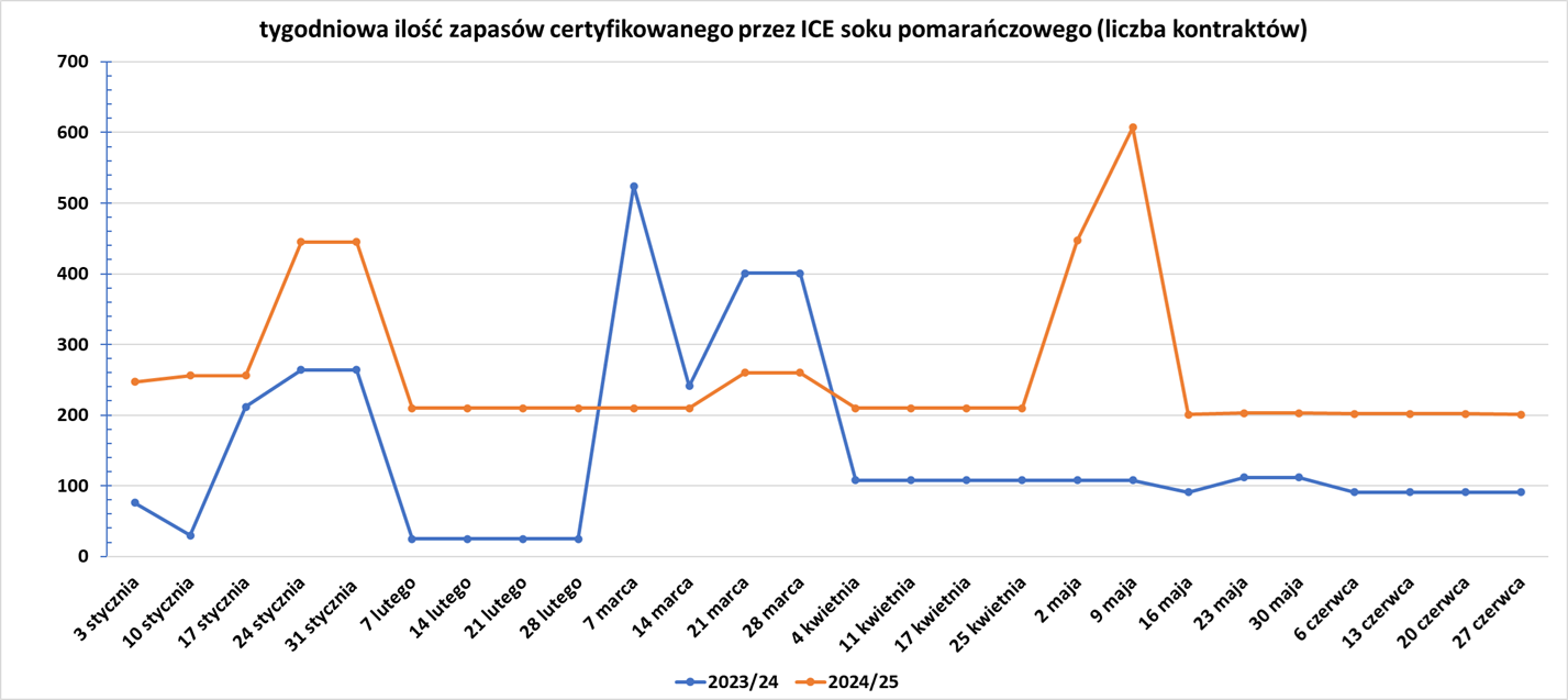 - Zapasy soku pomarańczowego w magazynach ICE: