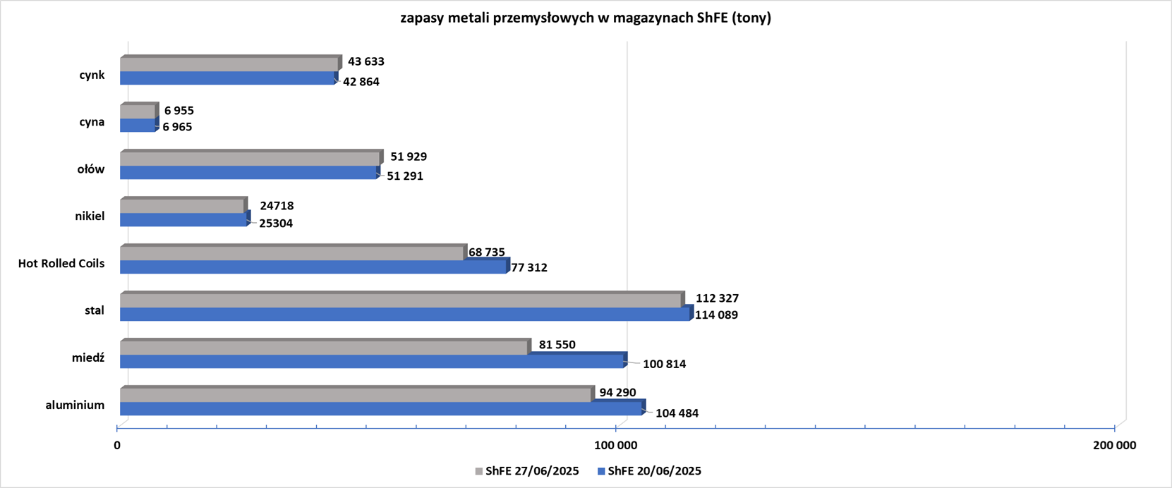 - Zapasy metali przemysłowych w magazynach Szanghajskiej Giełdy (ShFE):
