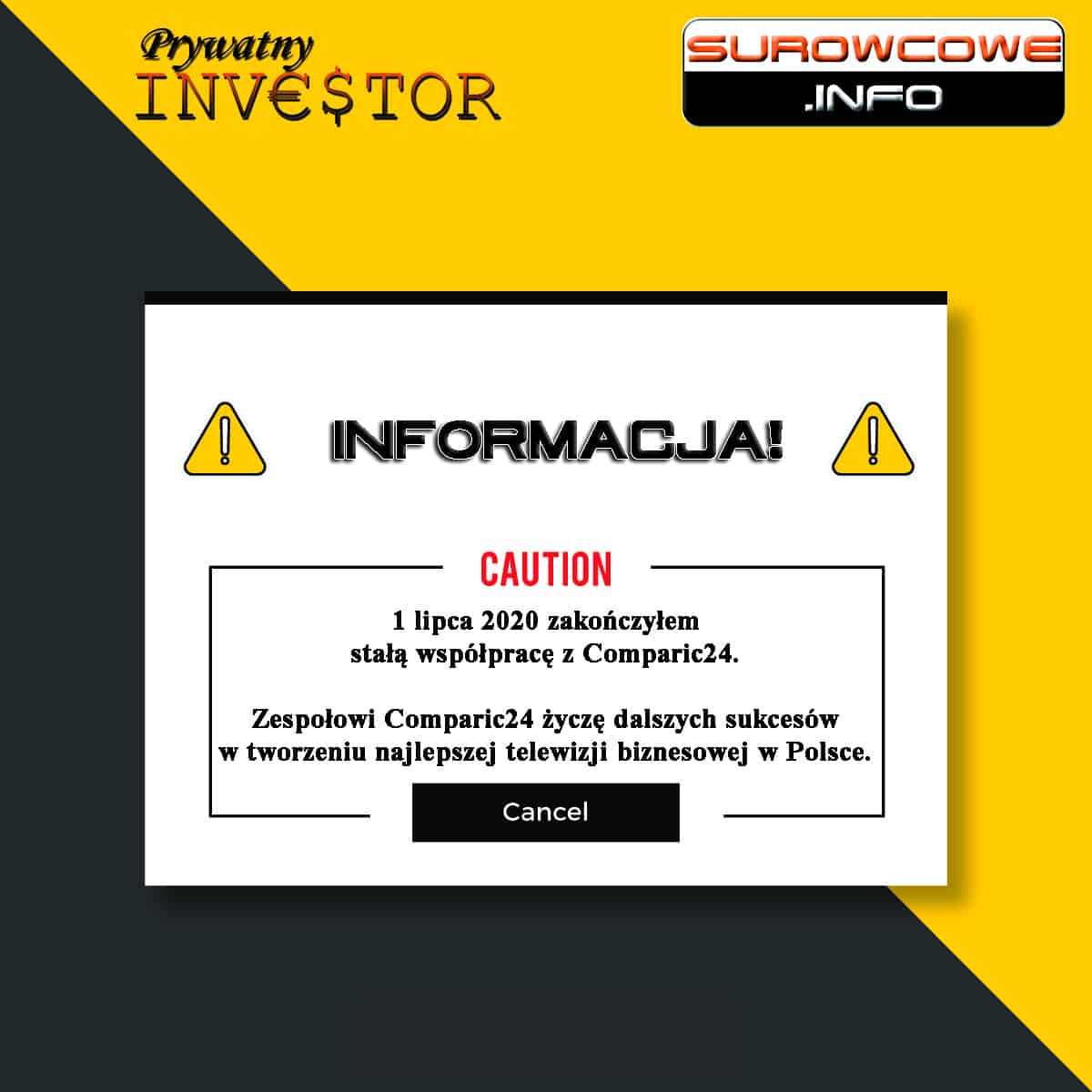 Informuję, że z dniem 1 lipca 2020 roku zakończyłem stałą współpracę z Comparic24, w ramach której tworzyłem autorskie programy Surowcowe info oraz Today in USA.