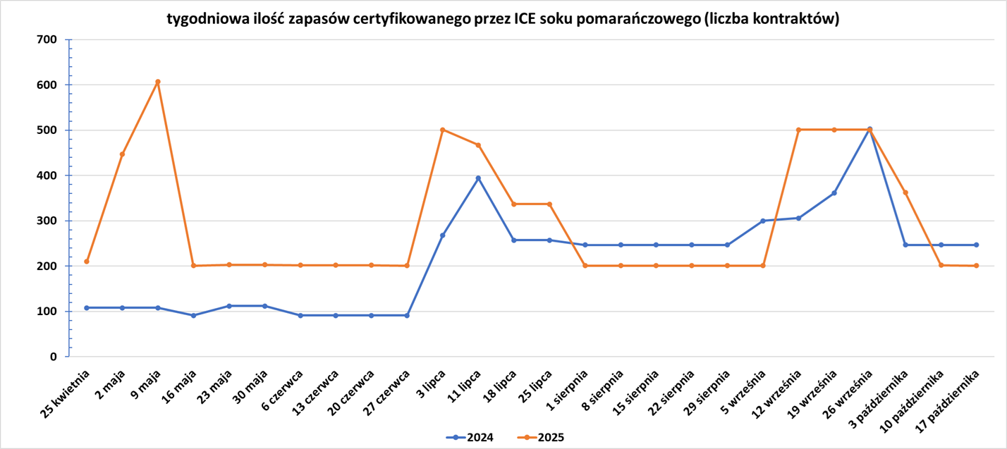 - Zapasy soku pomarańczowego w magazynach ICE: