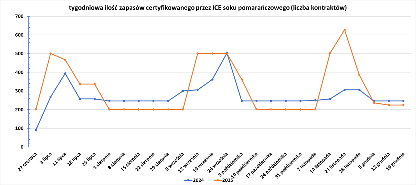 - Zapasy soku pomarańczowego w magazynach ICE: