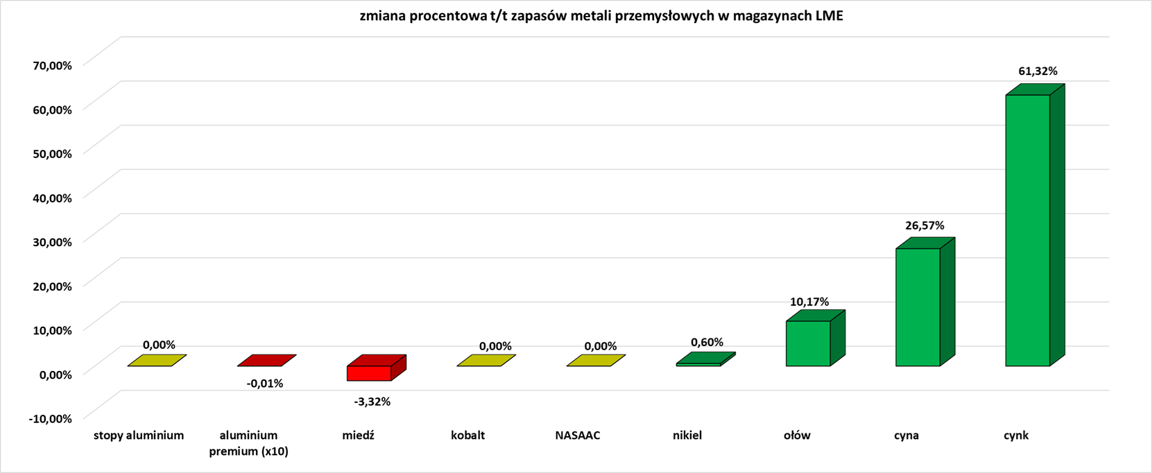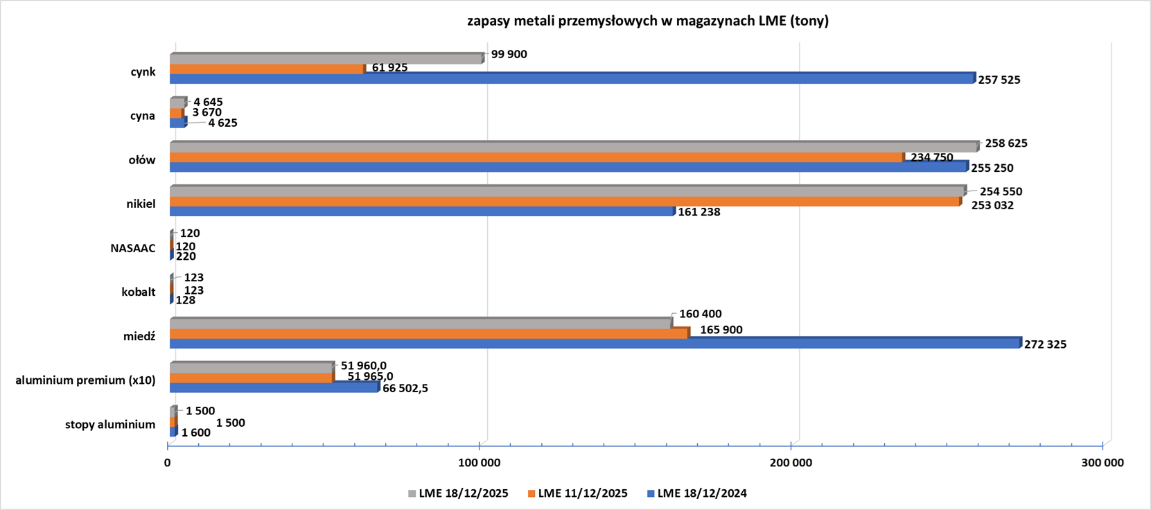 - Zapasy metali przemysłowych w magazynach Londyńskiej Giełdy Metali (LME):